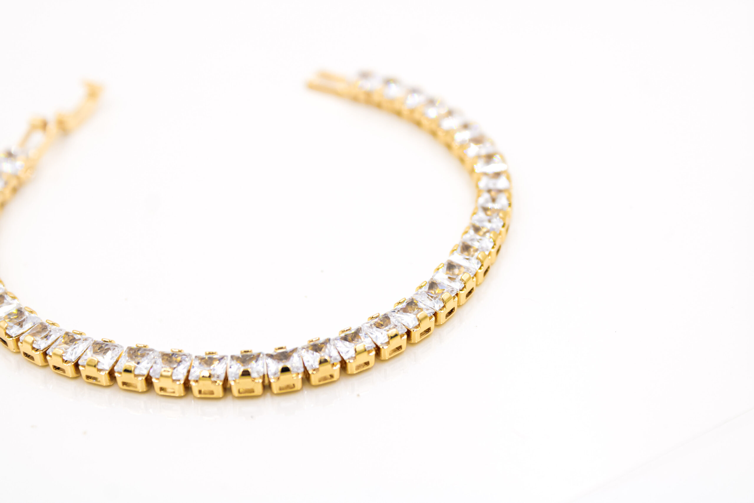 Gleaming with quiet confidence, the gold Classic Auré Tennis Bracelet is your go-to for everyday elegance. Its radiant links offer just the right amount of shine- refined yet relaxed. Whether worn alone or layered, it adds an effortless polish that moves seamlessly from sunlit brunches to evening soirées.