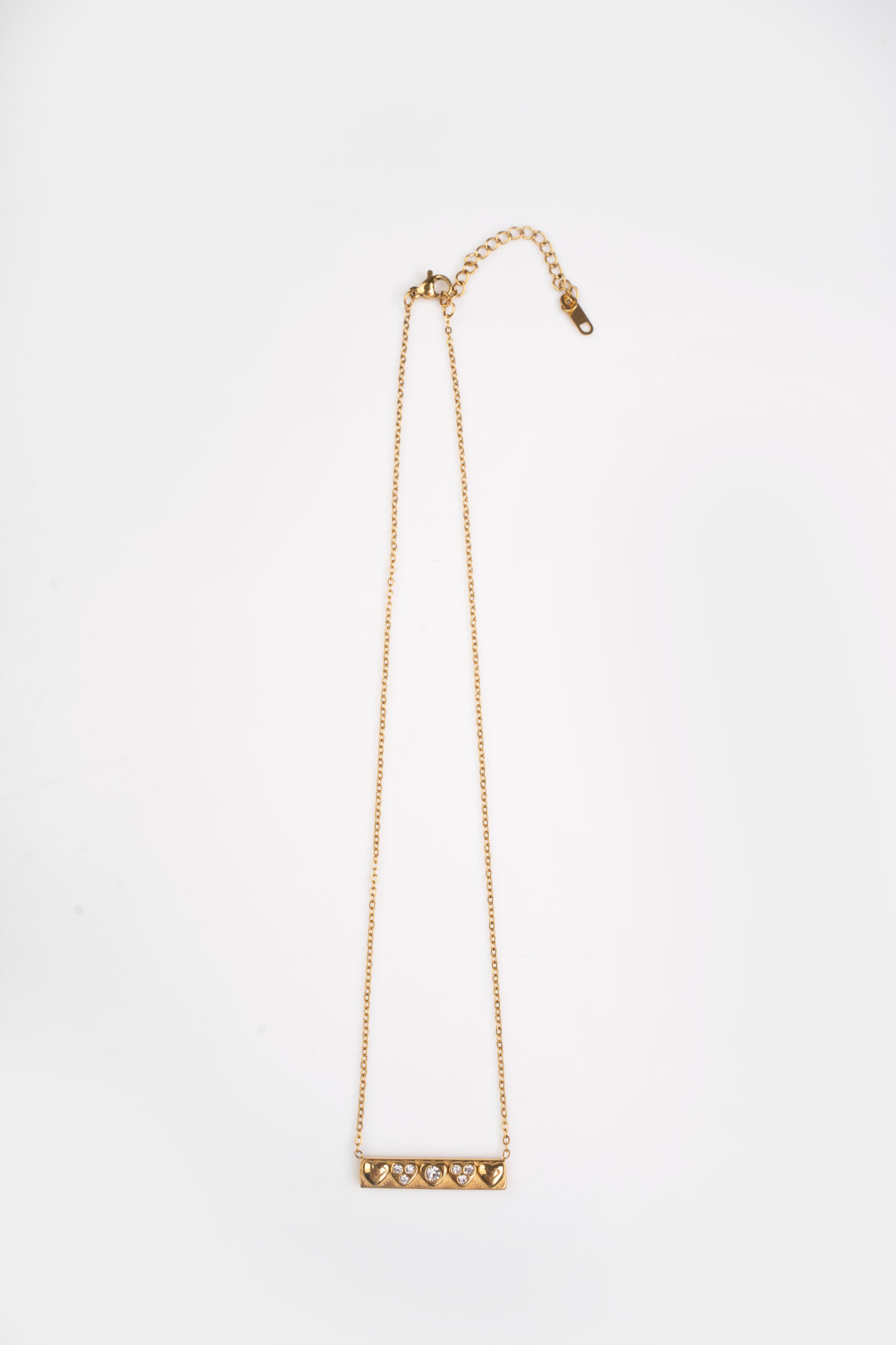 Refined with intention, the Velintra Necklace brings together symmetry and sparkle in a minimalist bar silhouette. Accented with delicate crystals, it sits close to the neck for a sleek finish-perfect worn solo for an understated glow or layered with fine chains for an elevated everyday look. Designed to be timeless, effortless, and quietly bold.